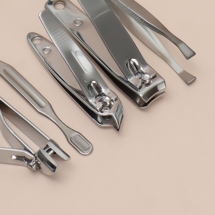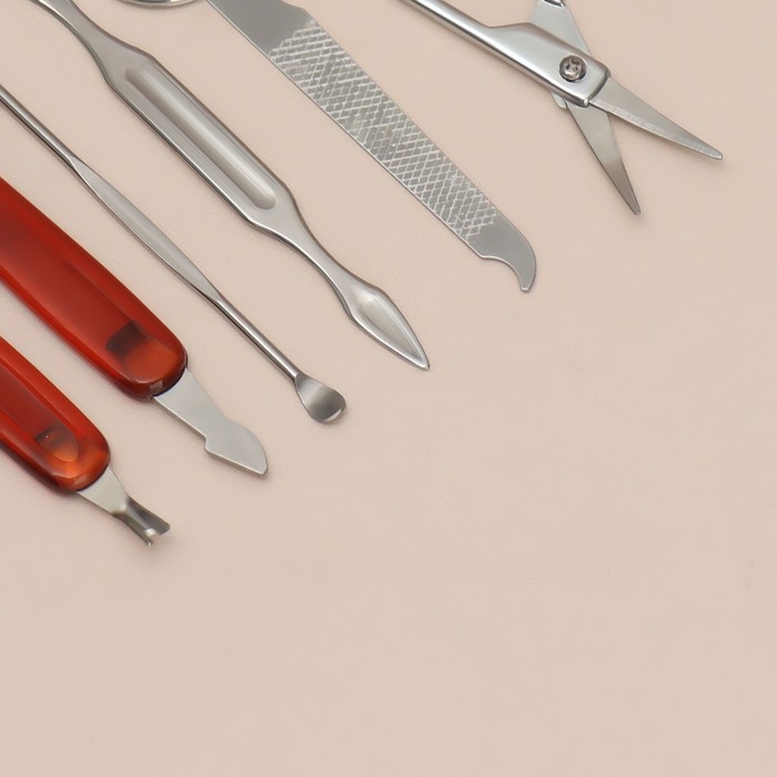 Набор маникюрный, 8 предметов, в футляре, цвет коричневый