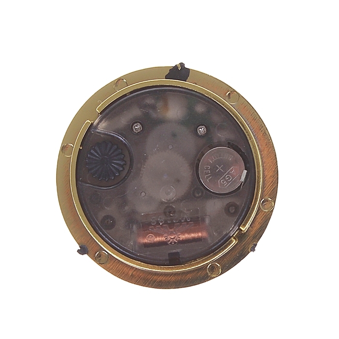 - Будильник оснащён кварцевым механизмом с дискретным ходом стрелок.