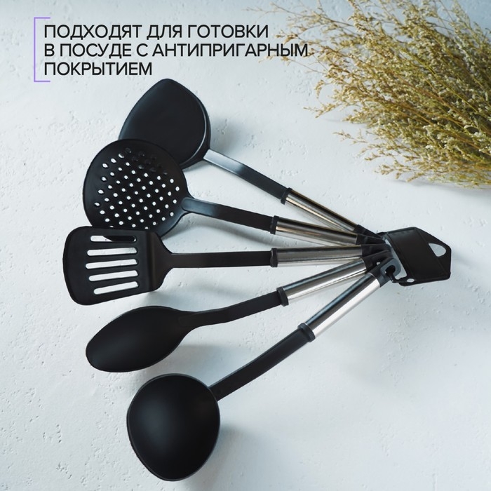 Набор кухонных принадлежностей Доляна «Антрацитовый блеск», 5 предметов, цвет чёрный