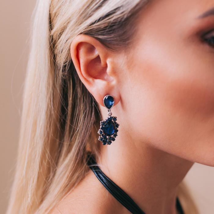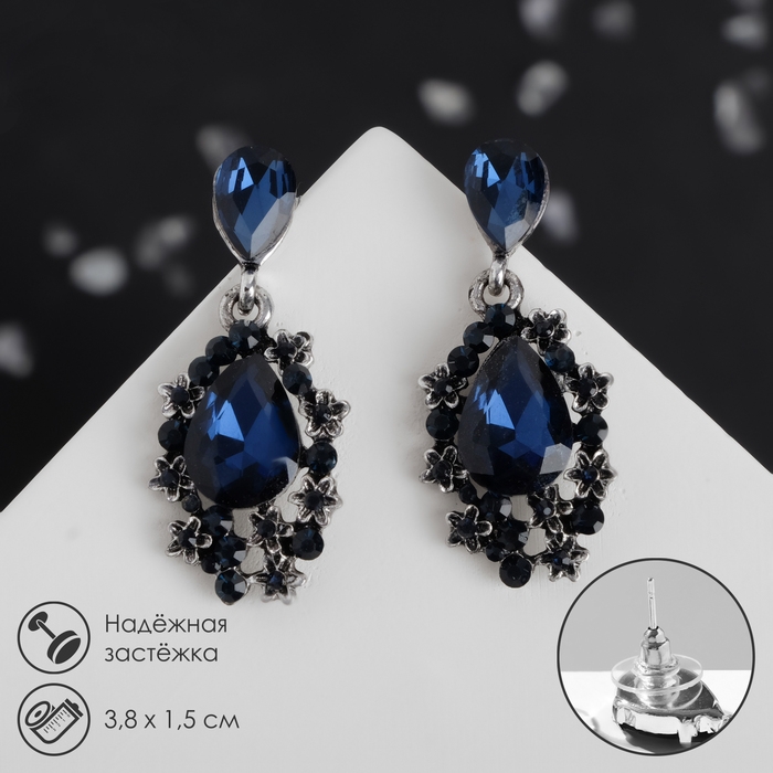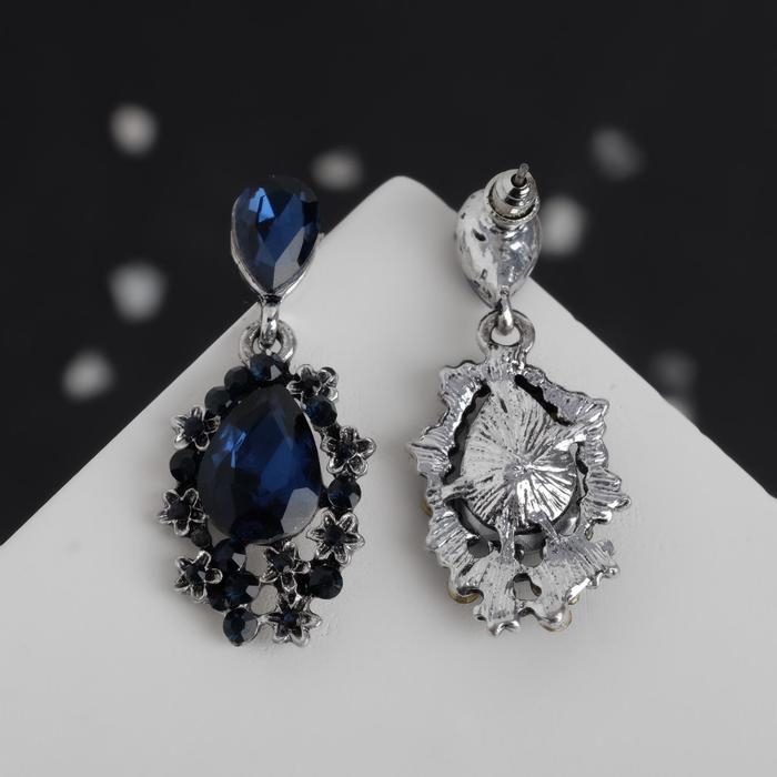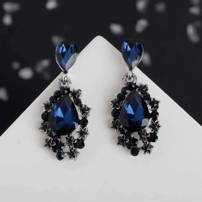 Серьги со стразами «Карнавал» шик, цвет синий в чернёном серебре