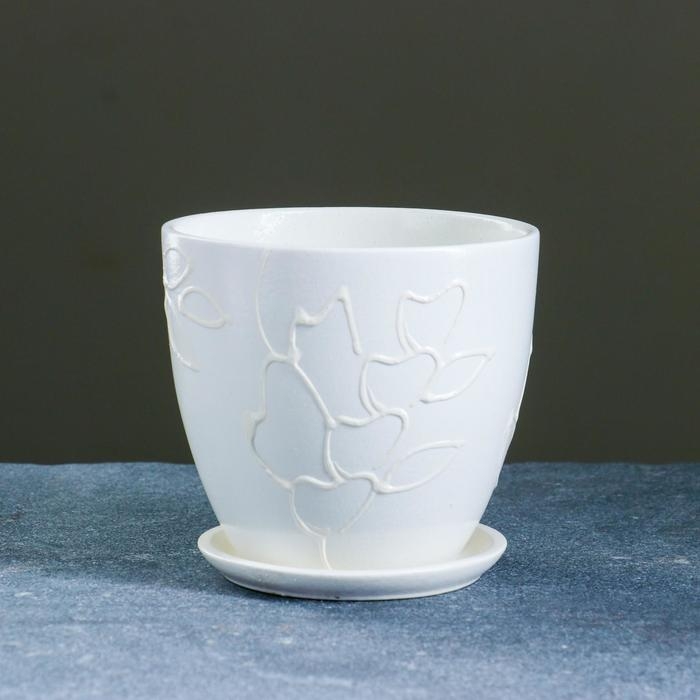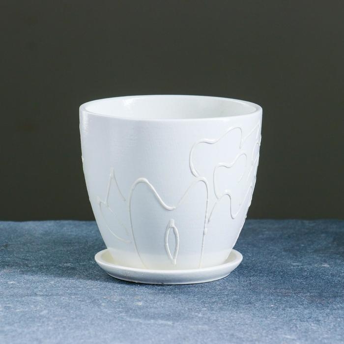 Горшок для цветов «Кураж», 600 мл, d=12 см, h=10 см, керамический, с поддоном, белый