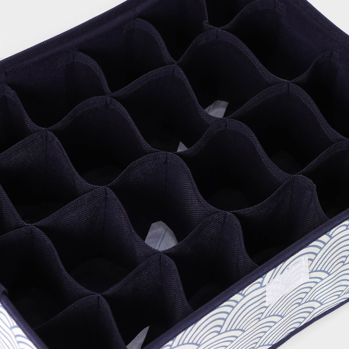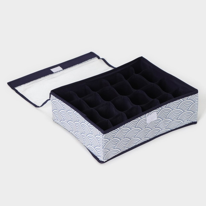 Органайзер для хранения белья с крышкой Доляна «Волна», 24 ячеек, 38×30×12 см, цвет синий