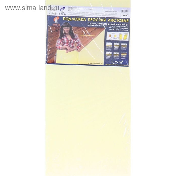 Подложка листовая под ламинат, жёлтая, 2 мм/1050х500х2/5,25 м2