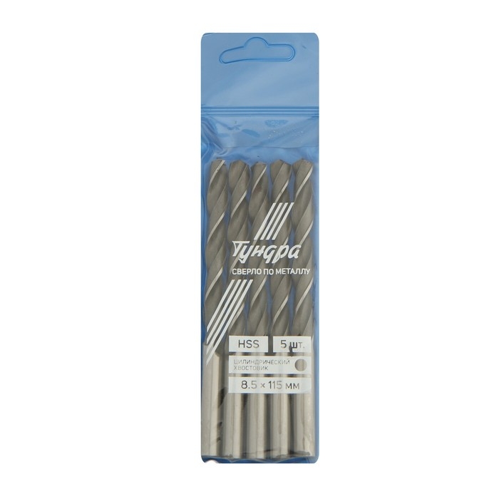 Сверло по металлу ТУНДРА, HSS, цилиндрический хвостовик, 8.5 x 115 мм, 5 шт.