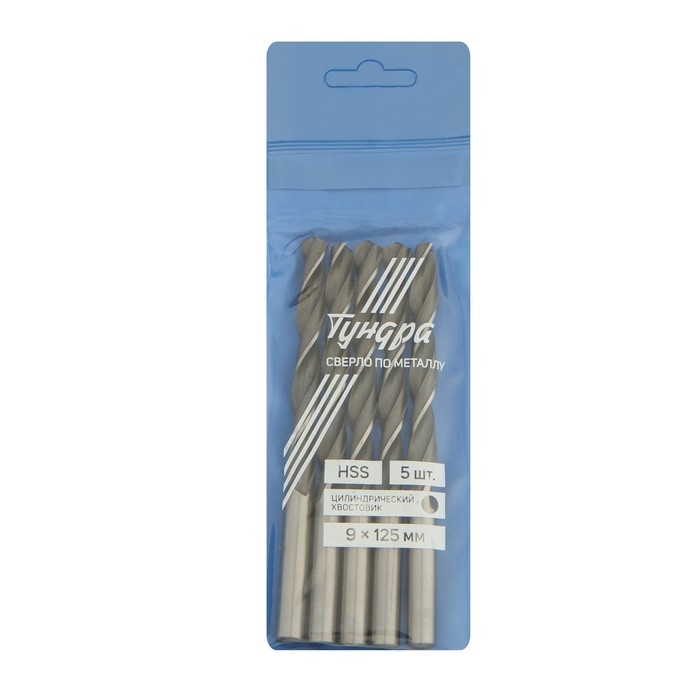 Сверло по металлу ТУНДРА, HSS, цилиндрический хвостовик, 9 х 125 мм, 5 шт.