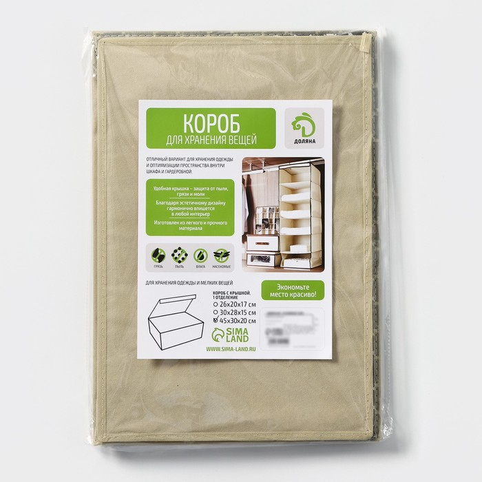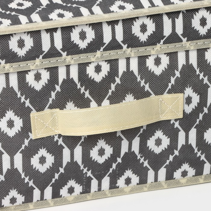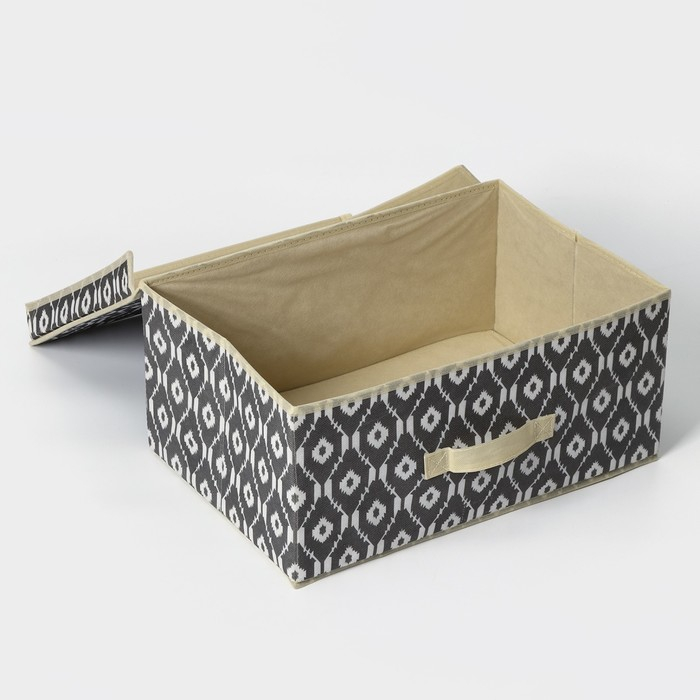 Короб стеллажный для хранения с крышкой Доляна «Ромбы», 45×30×20 см, цвет серый