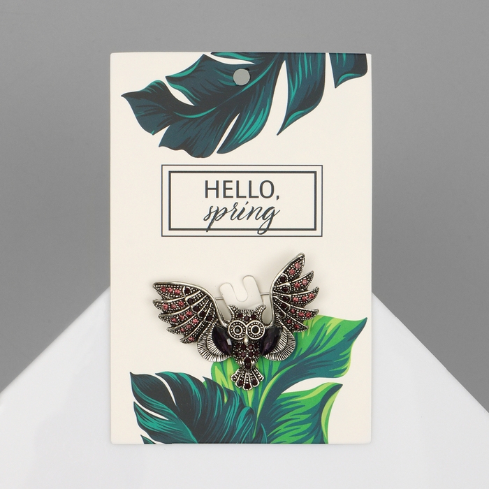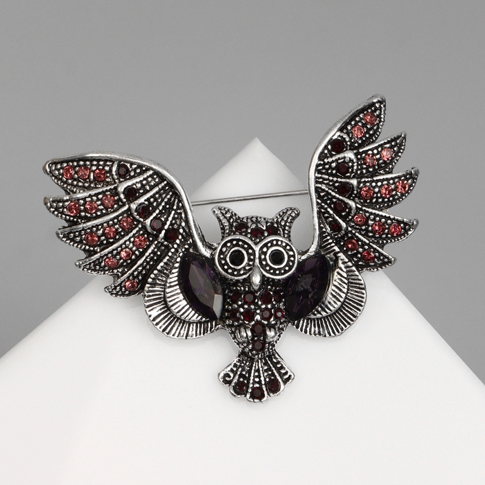 Брошь «Сова», цвет фиолетовый в чернёном серебре