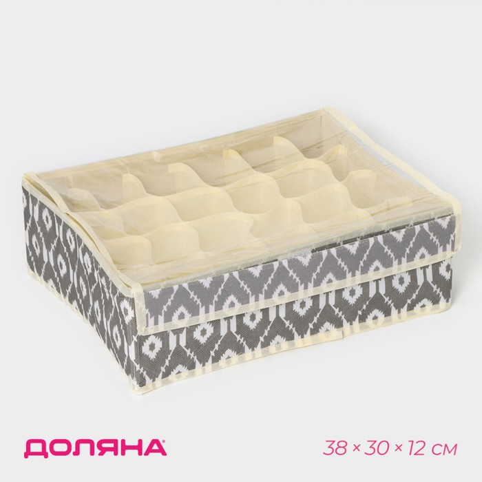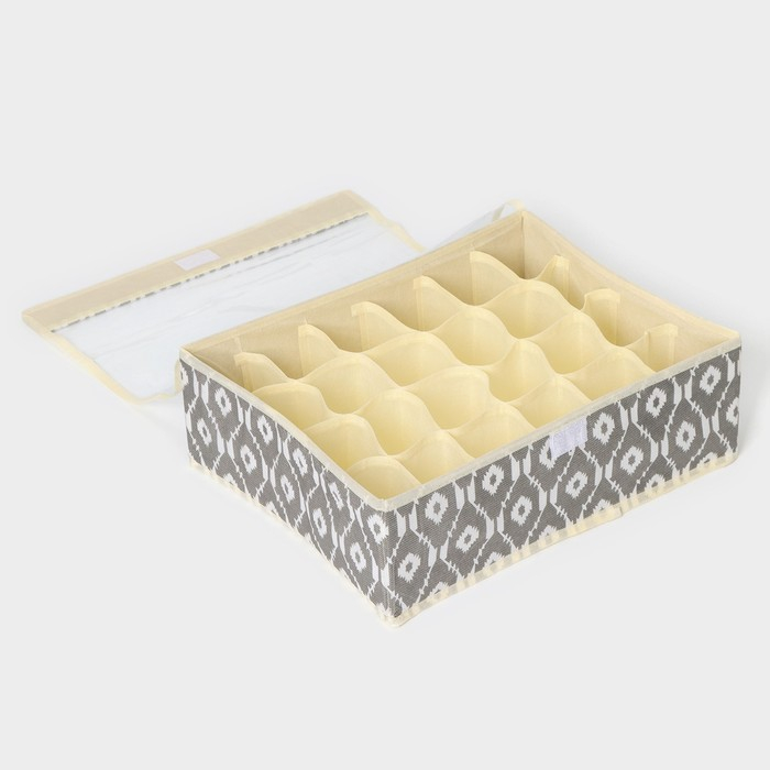 Органайзер для хранения белья с крышкой Доляна «Ромбы», 24 ячеек, 38×30×12 см, цвет серый