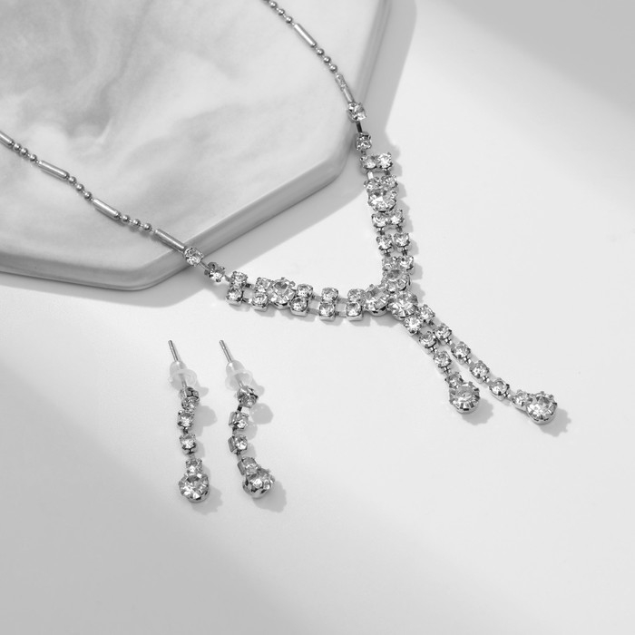 Набор 2 предмета; серьги, колье «Легкий флирт» дождик, белый в серебре, 40 см