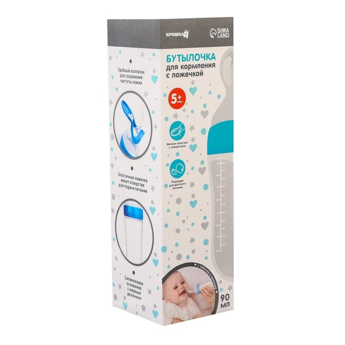 Бутылочка для кормления с ложкой, силикон, от 5 мес., 90 мл., цвет МИКС