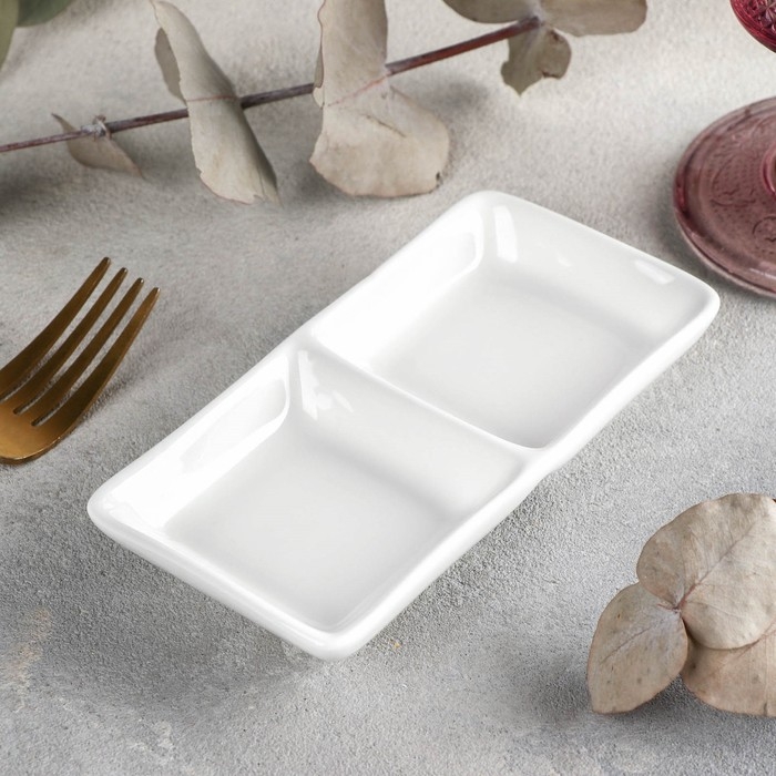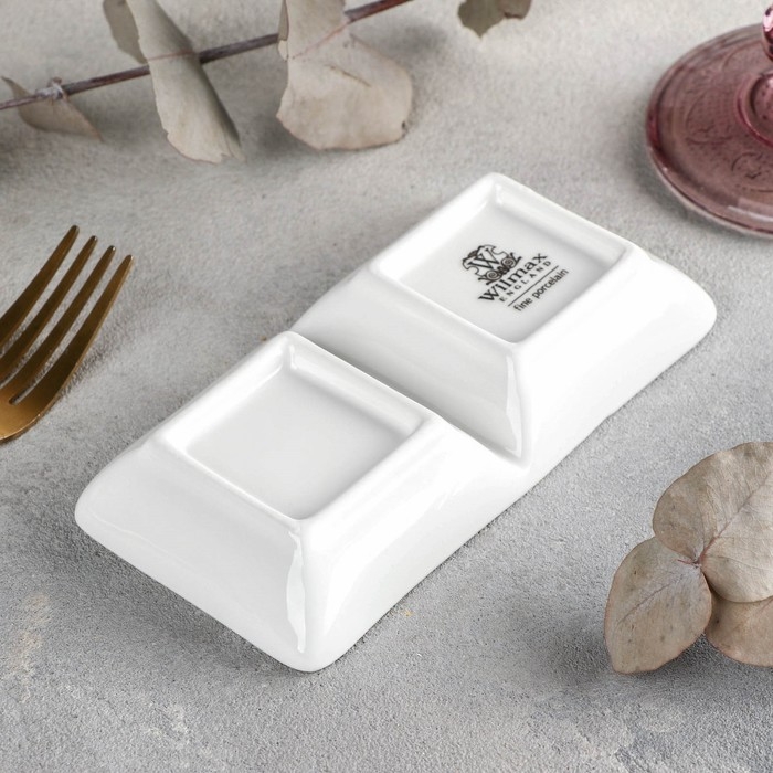 Менажница фарфоровая 2 ячейки Wilmax, 60 мл, 14,5×7,5 см, цвет белый