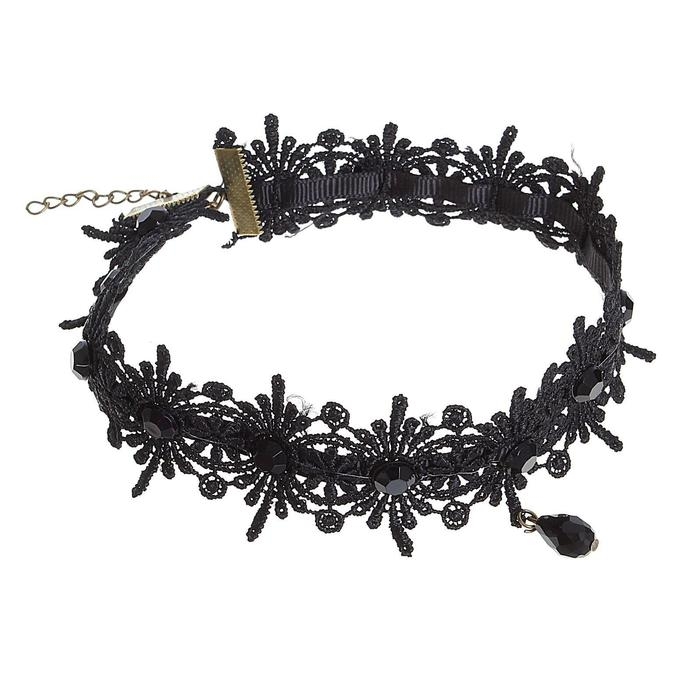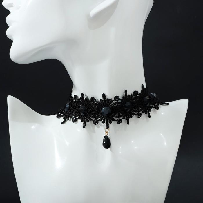 Чокер «Александрия» кружево, капля, цвет чёрный , длина 30см