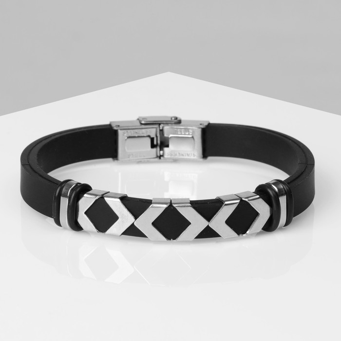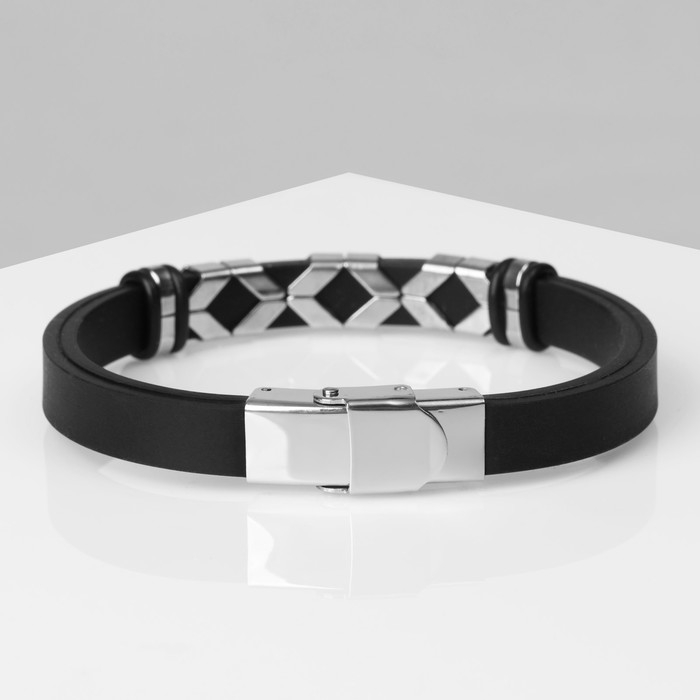 Браслет унисекс «Мощь» геометрия, цвет чёрный с серебром, 22 см