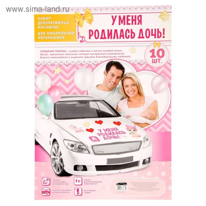 Набор магнитов на авто «У меня родилась дочь!», на выписку