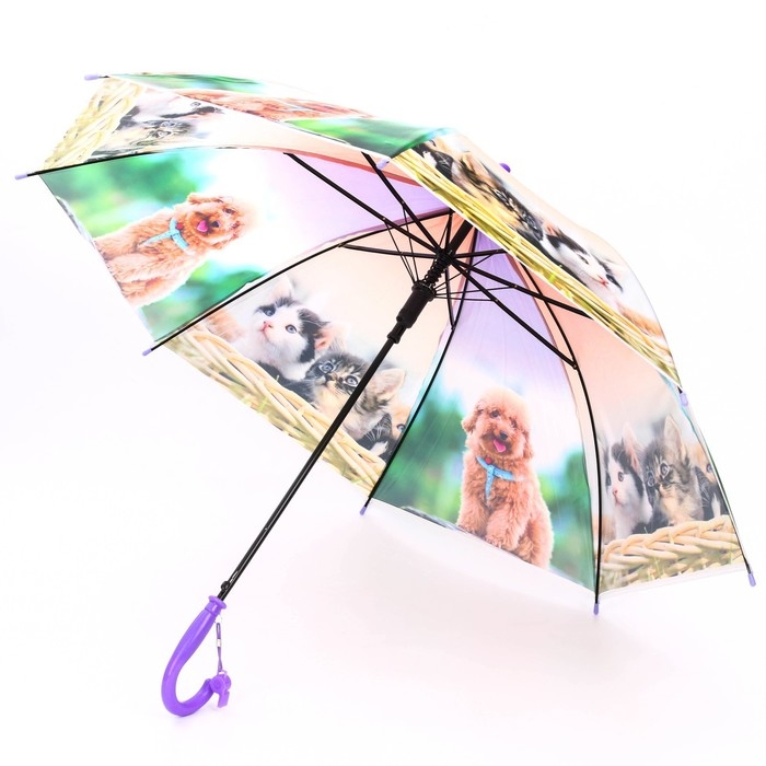 Зонт детский полуавтоматический «Милые зверюшки», r=41см, со свистком, цвет МИКС