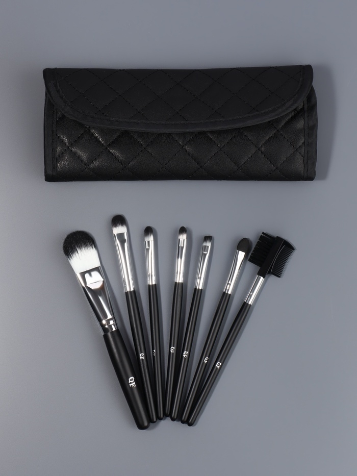 Набор кистей для макияжа, 7 предметов, чехол на кнопке, цвет чёрный