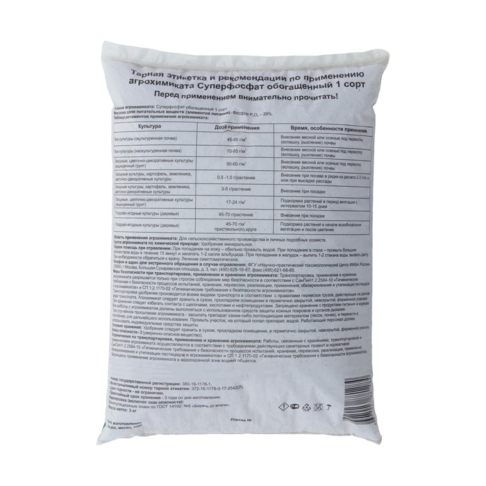 Удобрение минеральное Суперфосфат обогащенный: основа успешного урожаяУрожайность сельскохозяйственных культур напрямую зависит от множества факторов, среди которых особое значение имеет правильное питание растений. Одним из ключевых элементов в обеспечении растений необходимыми питательными веществами является минеральное удобрение. В частности, удобрение минеральное Суперфосфат обогащенный заслуженно пользуется популярностью среди садоводов и фермеров благодаря своей эффективности и универсальности.Преимущества удобрения минерального Суперфосфата обогащенногоОдним из основных преимуществ удобрения минерального Суперфосфата обогащенного является его состав, специально разработанный для обеспечения растений необходимыми питательными элементами. Фосфор, являющийся основным компонентом данного удобрения, играет важную роль в процессах фотосинтеза, усилении корневой системы и формировании цветочных почек. Кроме того, Суперфосфат обогащенный содержит также серу, которая способствует улучшению почвенной структуры и повышению устойчивости растений к болезням.Другим важным преимуществом удобрения минерального Суперфосфата обогащенного является его высокая растворимость, что позволяет быстро и эффективно доставить необходимые питательные вещества к корням растений. Это особенно важно в условиях неблагоприятной почвы или неблагоприятных погодных условий, когда растения испытывают дефицит необходимых элементов.Как правильно применять удобрение минеральное Суперфосфат обогащенныйДля достижения максимального эффекта от применения удобрения минерального Суперфосфата обогащенного необходимо правильно определить дозировку и способ применения. Обычно удобрение наносят вблизи корневой зоны растений, чтобы обеспечить быстрое и эффективное всасывание питательных веществ корнями. Для этого удобно использовать специальные распылители или навесные методы.Дозировка удобрения зависит от типа почвы, вида культуры и её возраста. Обычно на упаковке удобрения указывается рекомендуемая дозировка для различных видов культур. Важно соблюдать эти рекомендации, чтобы избежать переизбытка или недостатка питательных веществ, что может негативно сказаться на здоровье и урожайности растений.Преимущества использования удобрения минерального Суперфосфата обогащенногоПравильное применение удобрения минерального Суперфосфата обогащенного позволяет добиться множества положительных результатов. Во-первых, растения становятся более здоровыми и устойчивыми к стрессовым условиям, таким как засуха или заморозки. Во-вторых, урожайность значительно повышается благодаря улучшению питательного статуса растений. В-третьих, качество урожая значительно возрастает: плоды становятся более крупными, сочными и вкусными.Благодаря использованию удобрения минерального Суперфосфата обогащенного садоводы и фермеры могут получить хороший урожай даже в условиях неблагоприятной почвы или климата. Это особенно актуально для регионов с низким содержанием фосфора в почвах или для выращивания требовательных к питанию культур.В заключение, стоит отметить, что правильный выбор и применение удобрения минерального Суперфосфата обогащенного играют важную роль в обеспечении здоровья и высокой урожайности сельскохо