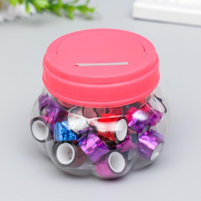 Клейкая лента пластик в банке "Перл. Белый и фиолет" н-р 40 шт 1,2 см, дл.0,9 м 7х7х9 см