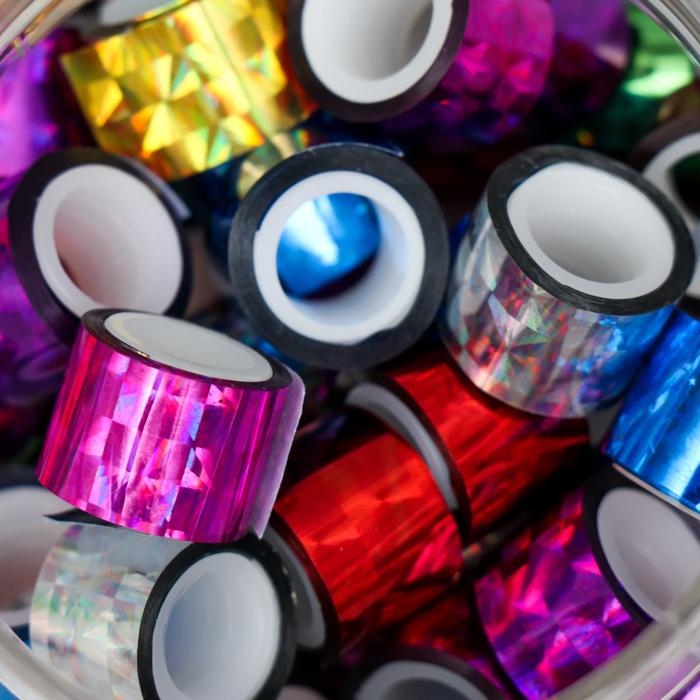 Клейкая лента пластик в банке "Голография" (набор 40 шт) цвета МИКС 1,2смх2,8м 7,5х8,5х8,5см