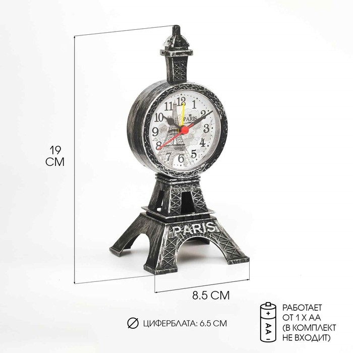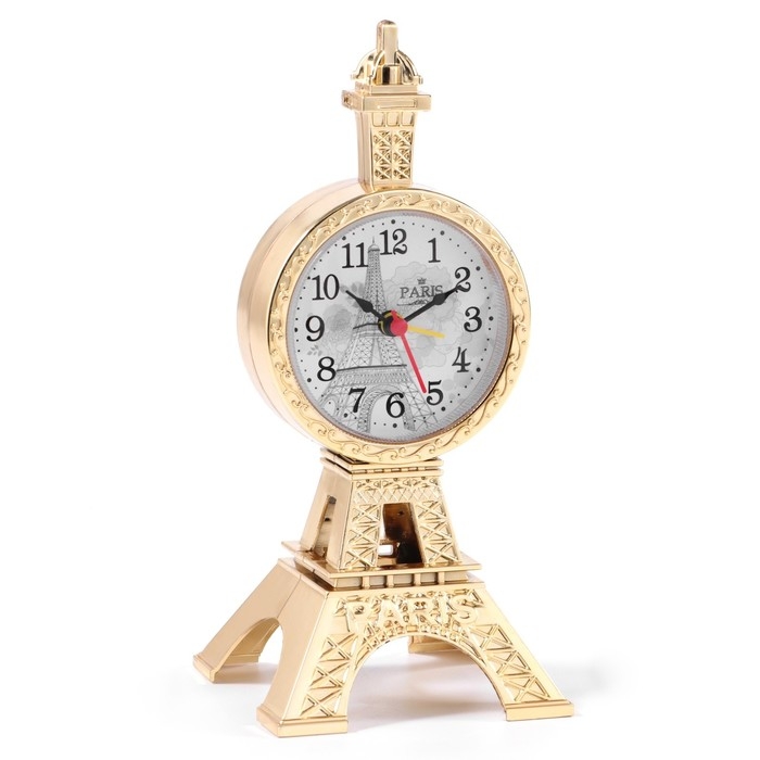 Часы - будильник настольные "Эйфелева башня", дискретный ход, d-6.5 см, 19 х 8.5 см, АА