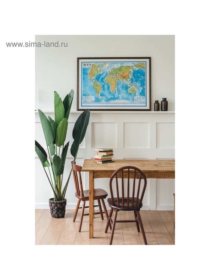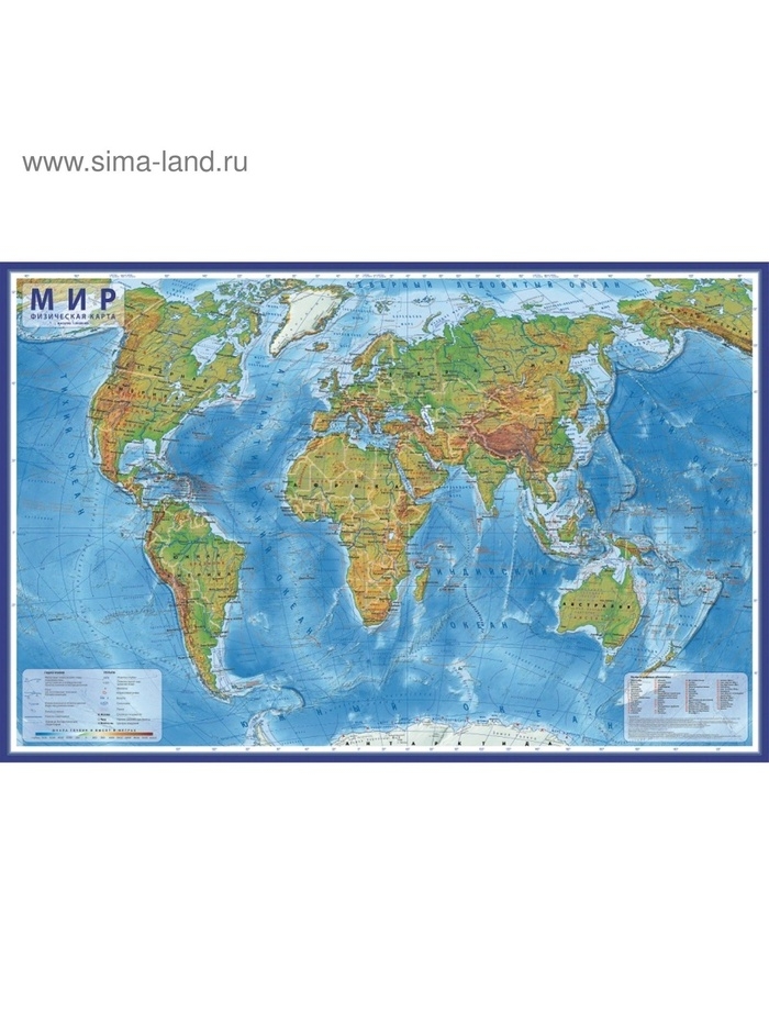 Географическая карта Мира физическая, 101 х 66 см, 1:29 млн, ламинированная настенная