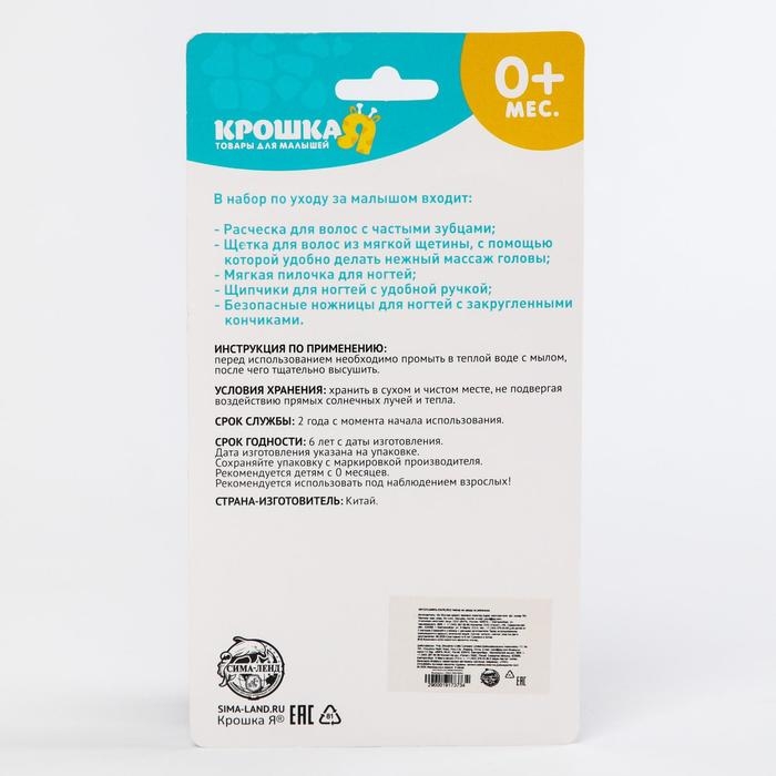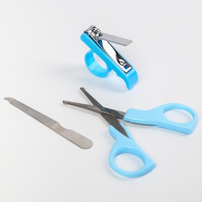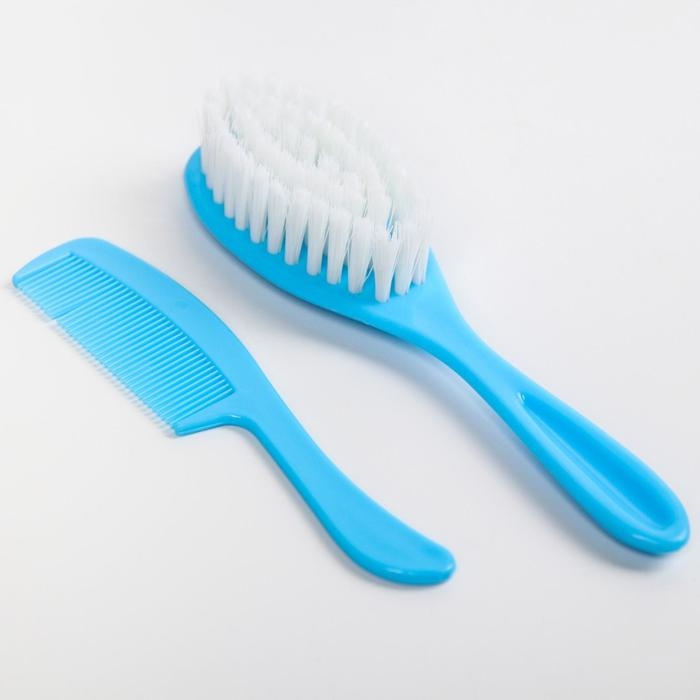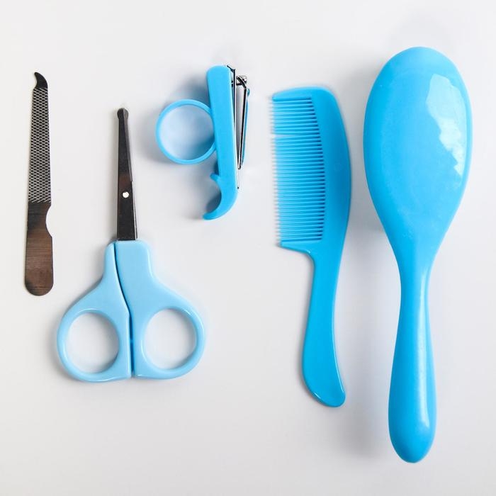 Набор по уходу за ребёнком, 5 предметов: щётка, расчёска, безопасные ножницы, пилочка и щипчики для ногтей, цвет голубой