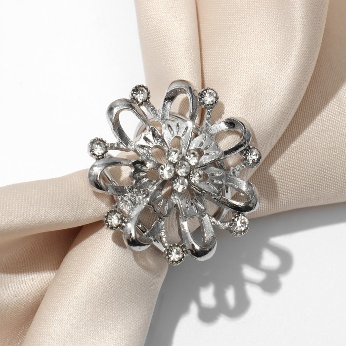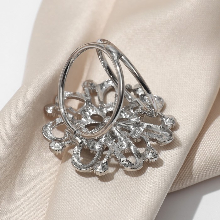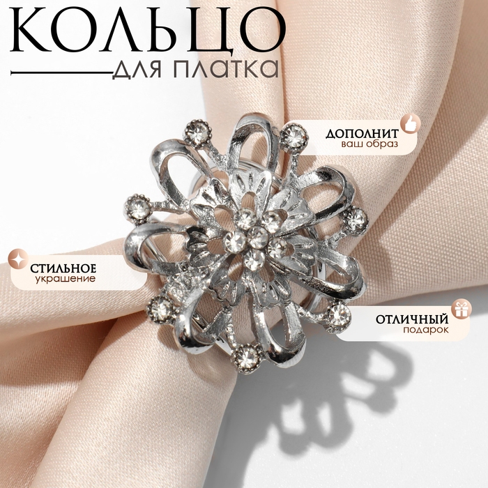 Кольцо для платка «Цветок» объемный со стразами, цвет белый в серебре
