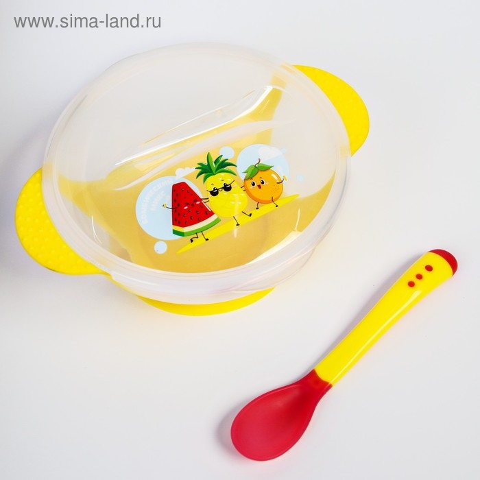 Набор для кормления, 3 предмета: миска 350 мл на присоске, крышка, термоложка, цвет жёлтый