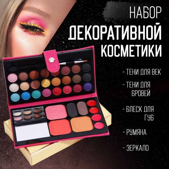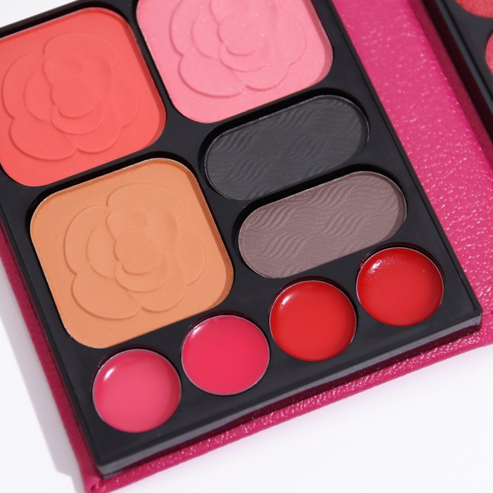 Компактный набор косметики удобно носить с собой, чтобы поправлять макияж в течение дня. Также его можно преподнести в качестве подарка на любой праздник благодаря яркому дизайну. Набор имеет удобную форму и широкий выбор средств для макияжа: