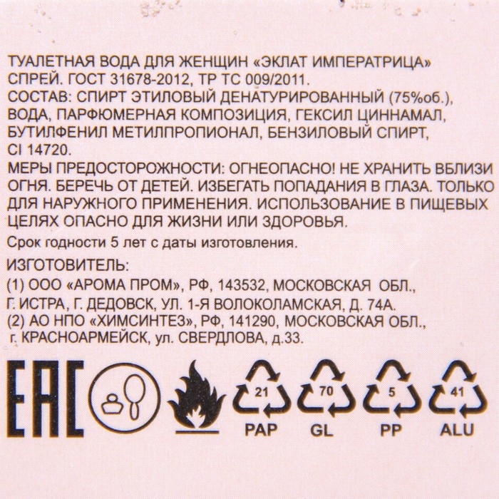 При всей нежности и притягательности запаха, экзотические нотки букета все же оставляют в нем что-то неземное и неприступное, от чего наслаждение ECLAT IMPERATRICE кажется высшим блаженством. А ведь по виду упаковки этого и не скажешь: он настолько стилизирован под лаконичный дизайн всемирно известной фирмы, что кажется очень далеким от роскоши.
