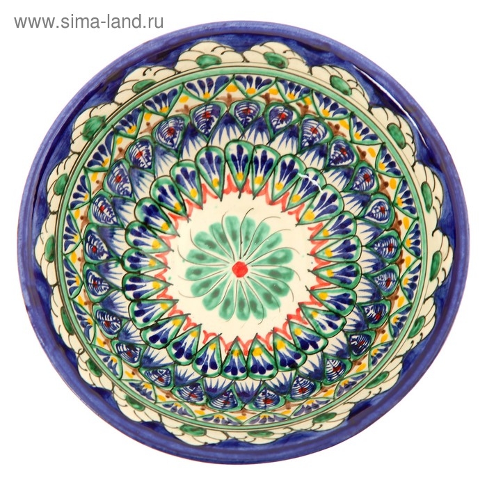 Супница Риштанская Керамика "Узоры", 23 см, зелёная