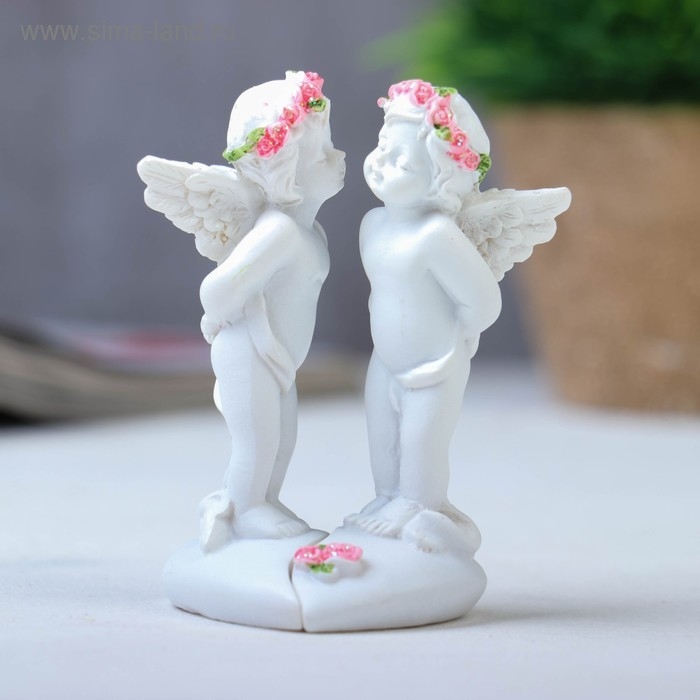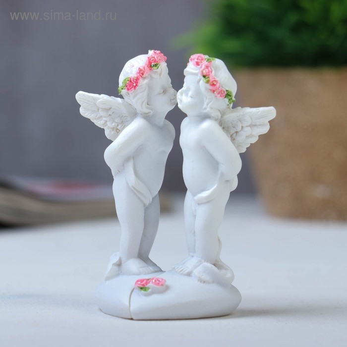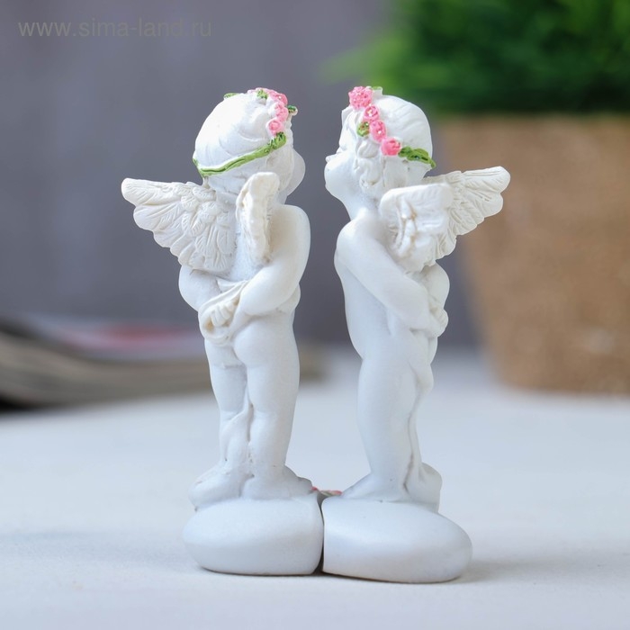 Сувенир полистоун "Целующиеся ангелочки в розовых веночках" набор из 2 штук 8,3х5х4,8 см