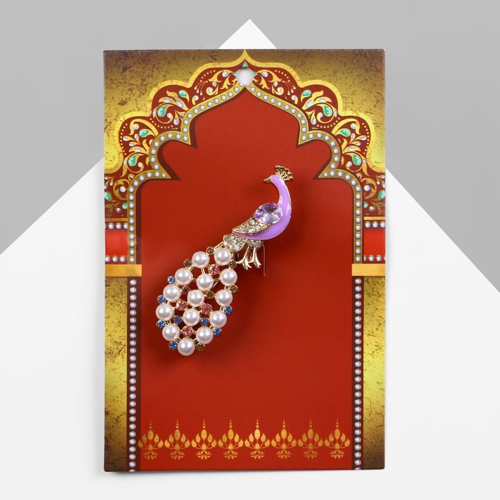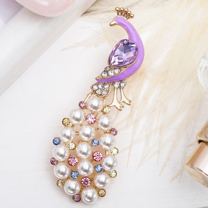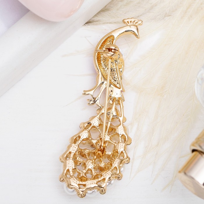Брошь «Павлин» с жемчужным хвостом, цветная в золоте