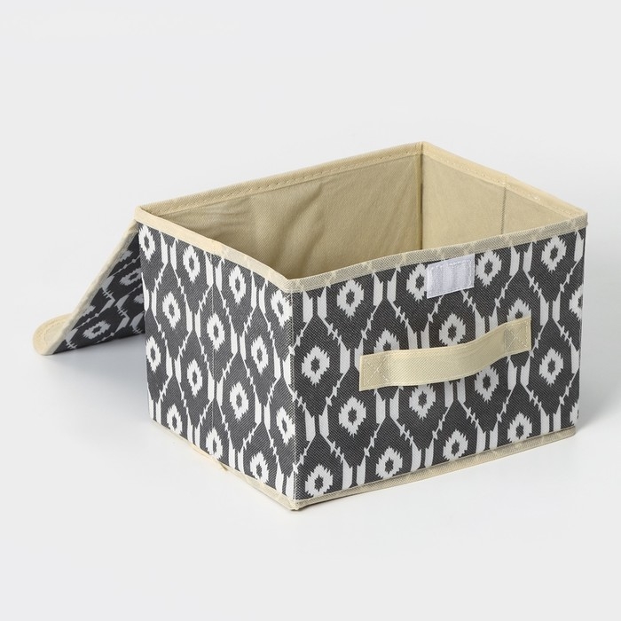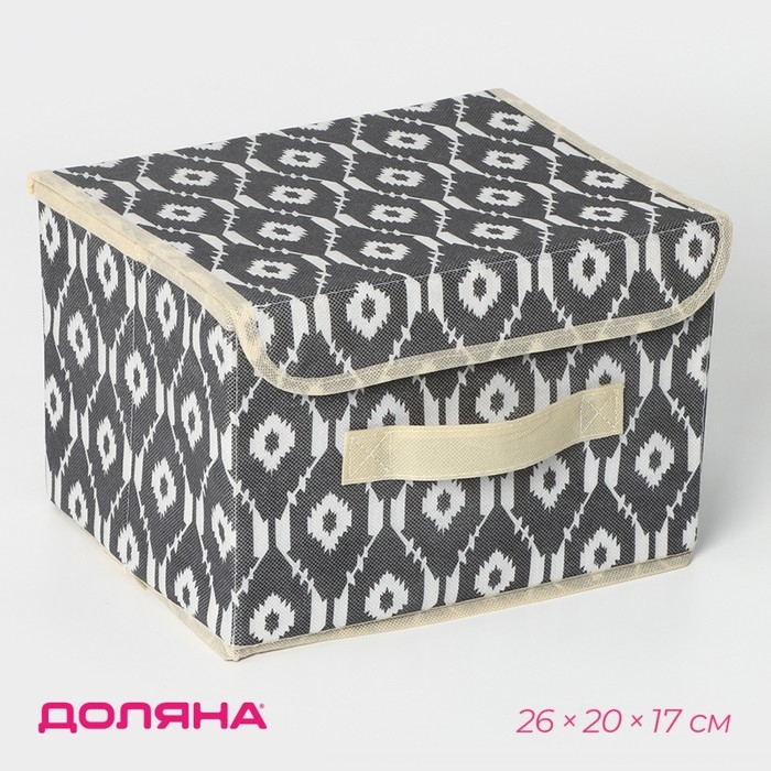 Короб стеллажный для хранения с крышкой Доляна «Ромбы», 26×20×17 см, цвет серый