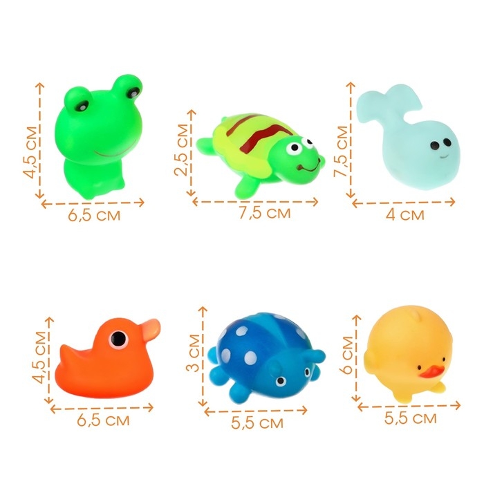 Набор резиновых игрушек для ванны «Весёлые друзья», с пищалкой, 6 шт, Крошка Я
