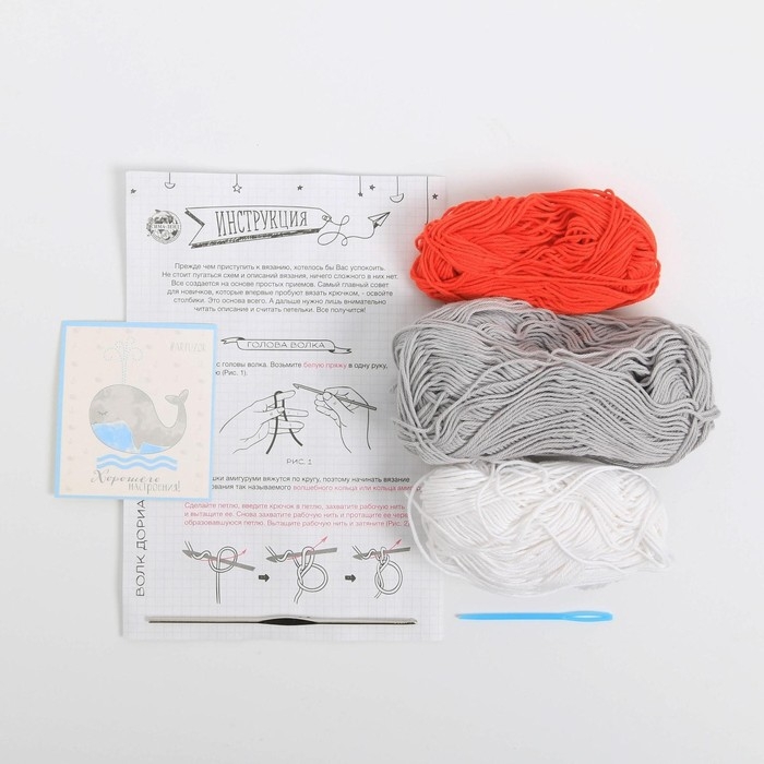 Набор для вязания. Амигуруми: мягкая игрушка своими руками «Волчонок Дориан», 21 см