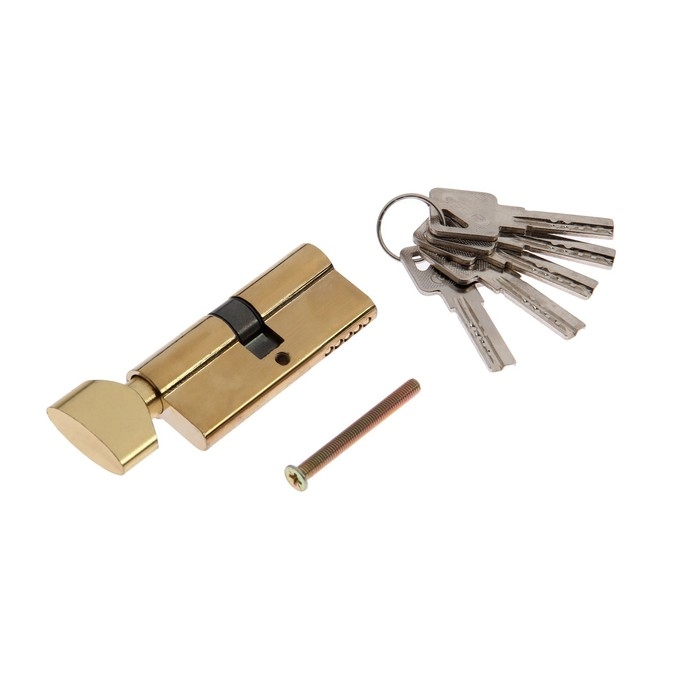 Цилиндровый механизм, 70 мм, с вертушкой, английский ключ, 5 ключей, цвет золото