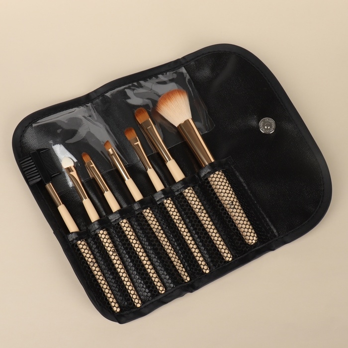 Набор кистей для макияжа «Рептилия», 7 предметов, чехол на кнопке, цвет чёрный