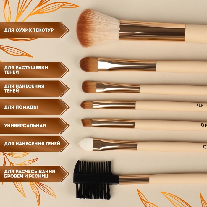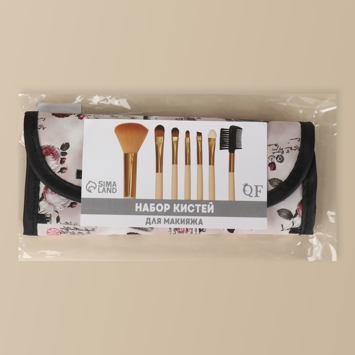 Набор кистей для макияжа «Франция», 7 предметов, на кнопке, цвет бежевый/розовый