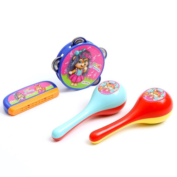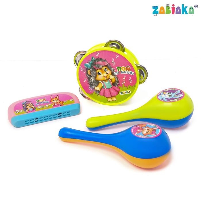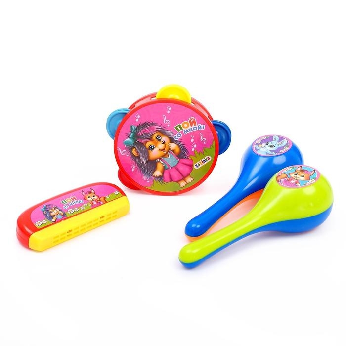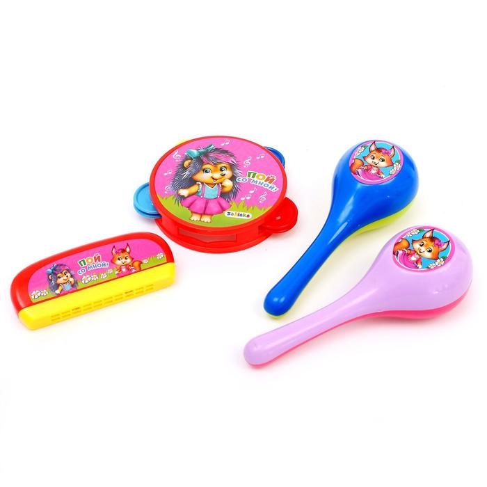 Набор музыкальных инструментов «Пой со мной»: бубен, 2 маракаса, губная гармошка, МИКС