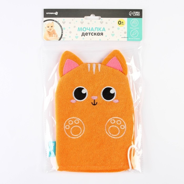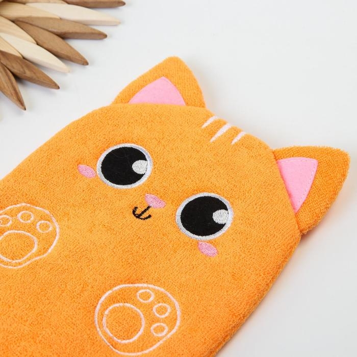Мочалка детская для купания «Котик», варежка, из махры