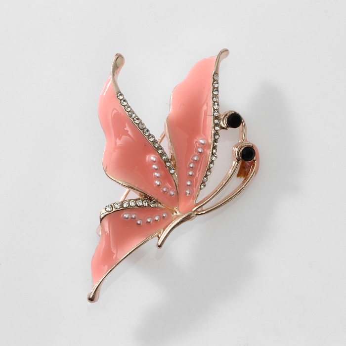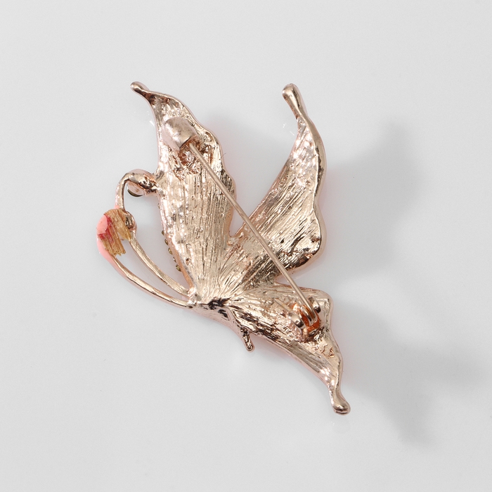 Брошь «Бабочка» нежность, цвет бело-розовый в розовом золоте