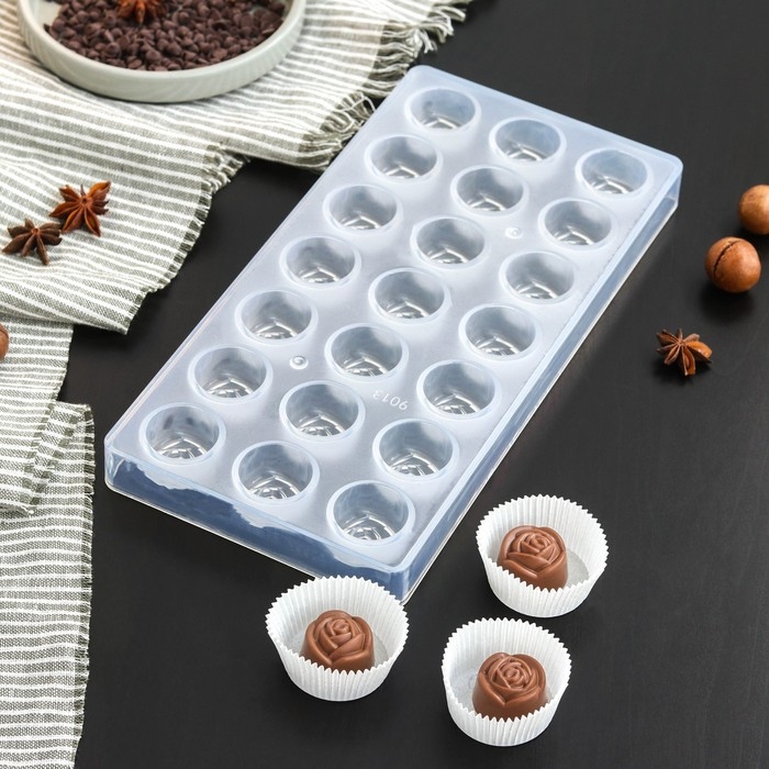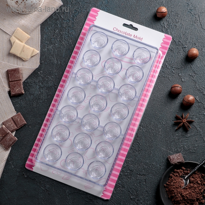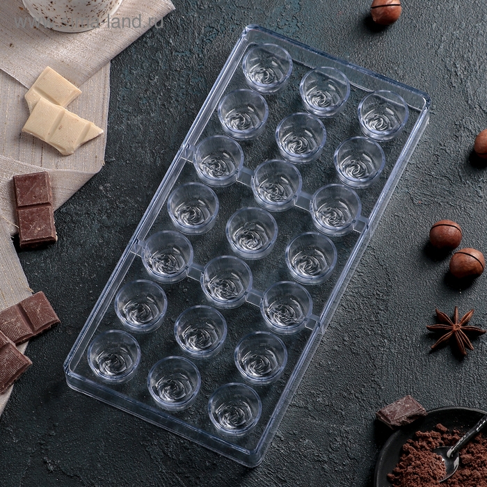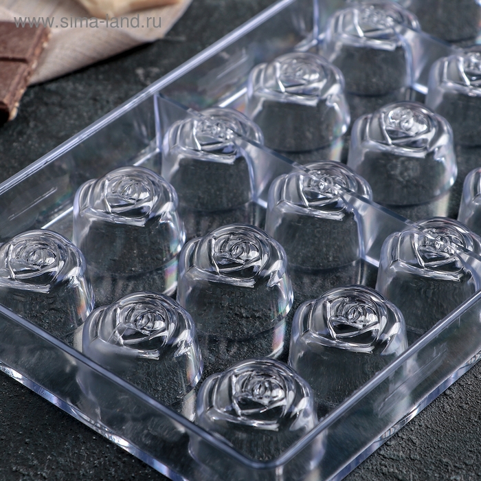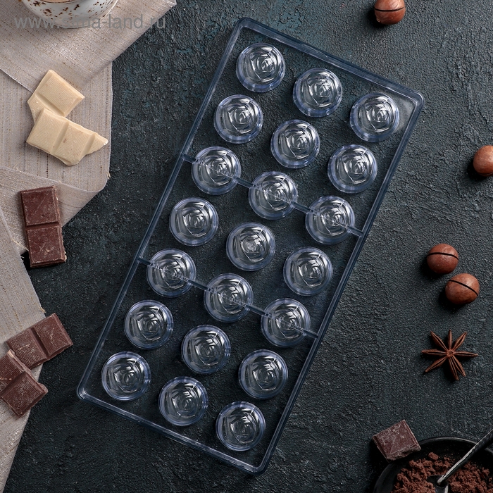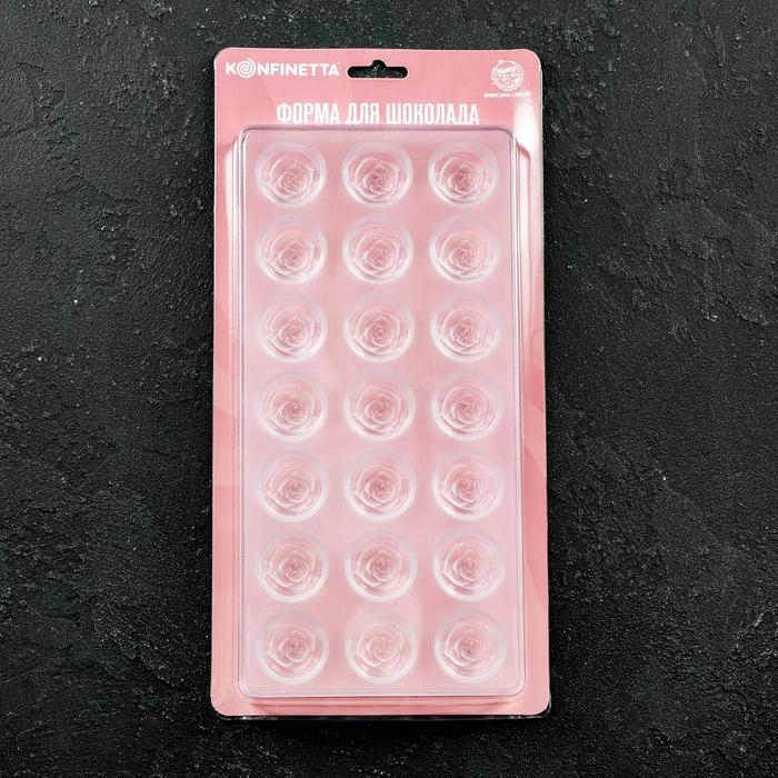 Форма для конфет и шоколада KONFINETTA «Роза», 27,5×13,5×3 см, 21 ячейка, цвет прозрачный