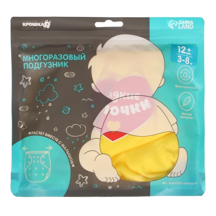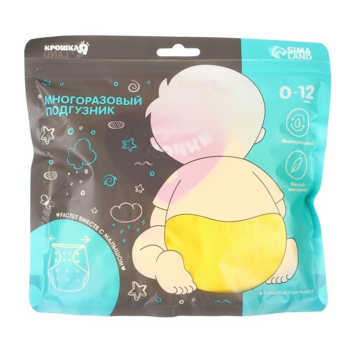 Многоразовый подгузник «Сладкие булочки», 3-15 кг, цвет желтый, Крошка Я