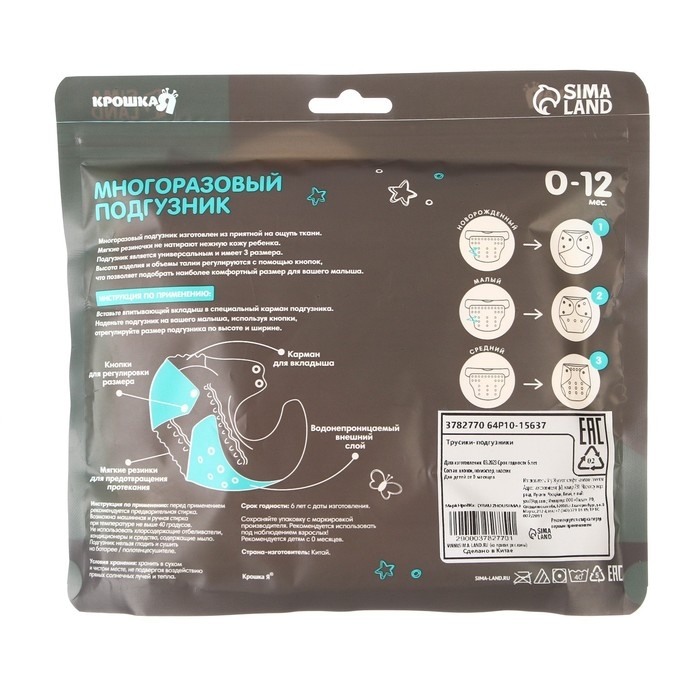 • Размер подгузника универсальный, подходит для детей от 3 до 15 кг, от рождения до 3 лет;