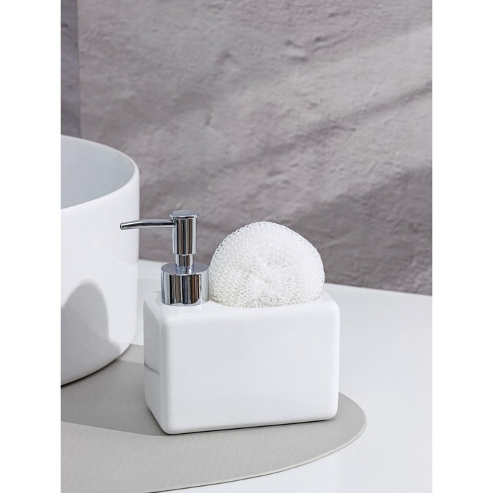 Дозатор для моющего средства с подставкой для губки Доляна, губка в комплекте, 385 мл, цвет белый