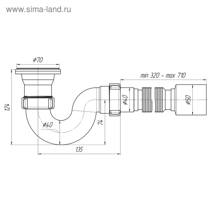 Сифон используется для душевого поддона. Для подключения к канализации комплектуется гибкой трубой размером 40 × 50 мм.