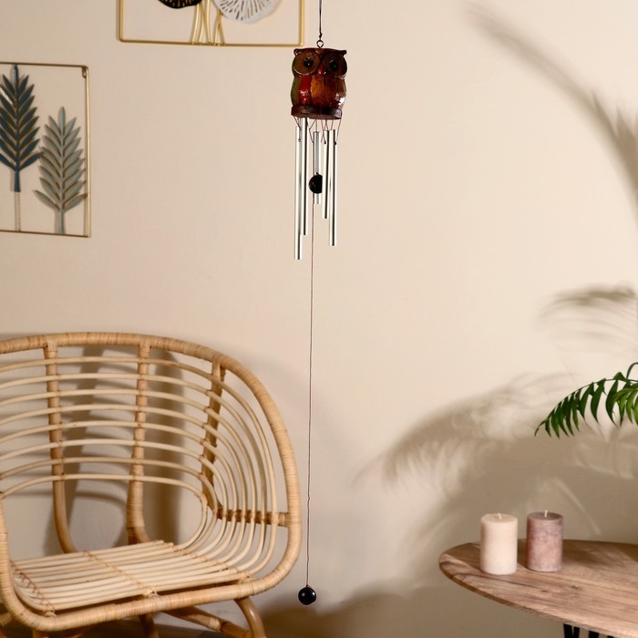 Музыка ветра "Сова с сердечком" дерево, металл 5х5х40 см