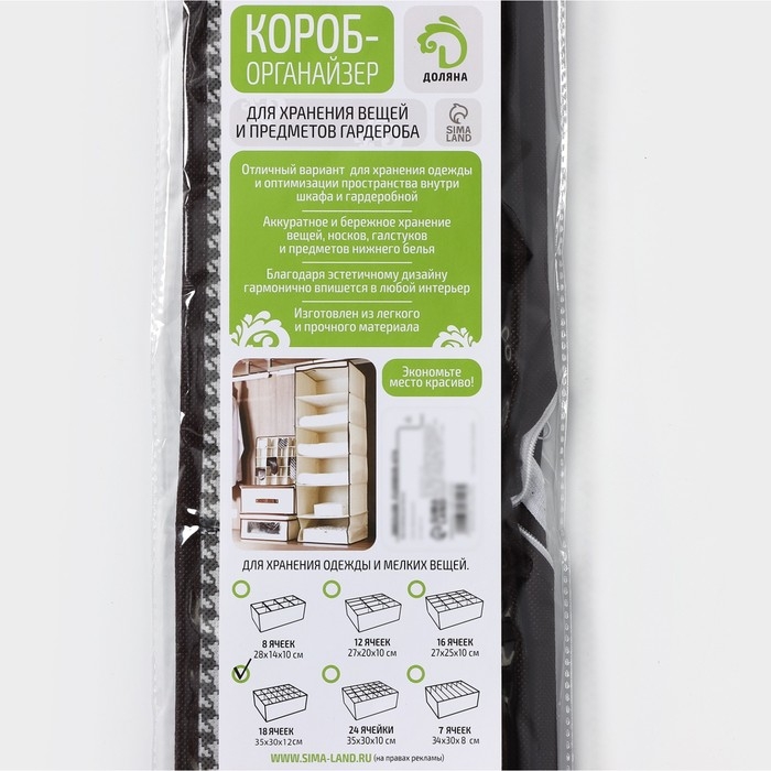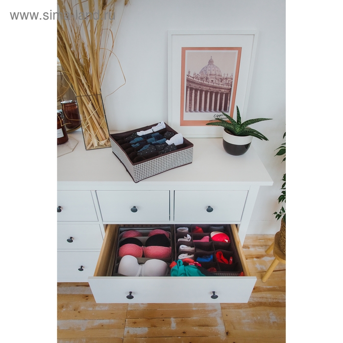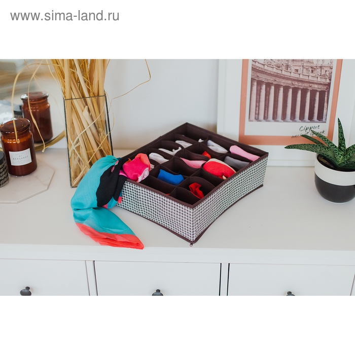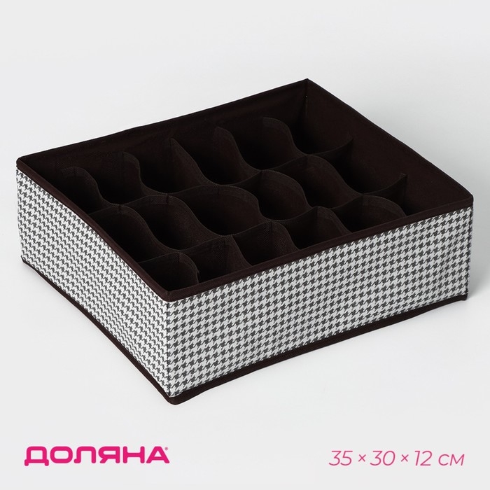 Органайзер для хранения белья Доляна «Вилли», 18 ячеек, 35×30×12 см, цвет бело-коричневый