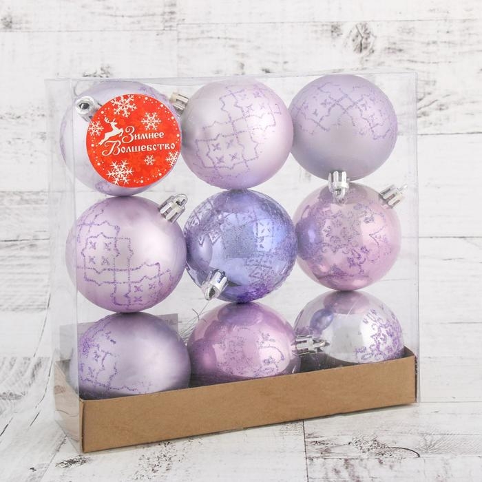 Набор шаров пластик d-6 см, 9 шт "Перламутровое сияние" сиреневый